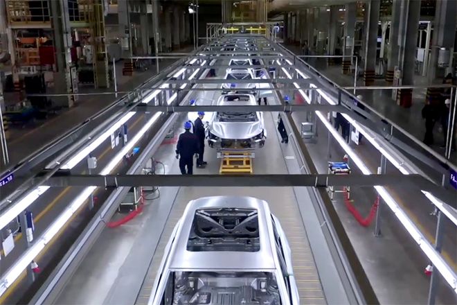 整個(gè)焊裝車間支持柔性線的轉(zhuǎn)化,通過智能化制造系統(tǒng)的精密控制,實(shí)現(xiàn)不同車型的夾具在20秒內(nèi)進(jìn)行切換,這種無縫切換保證了生產(chǎn)線可以同時(shí)生產(chǎn)4種不同車型。
